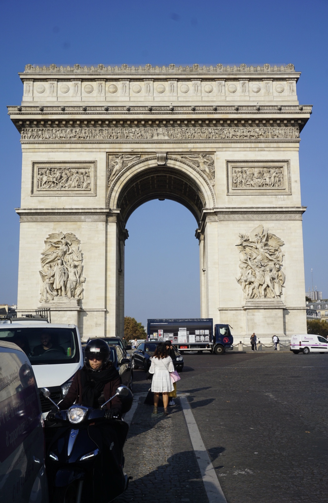 De Arc de Triomphe ligt aan het einde van de Champs-Élysées op place de l'Étoile. Het is een drukke rotonde met weinig regels. De rotonde, met in het midden de Arc de Triomphe, is de plek waar 12 wegen samenkomen. Hierdoor is de rotonde altijd erg druk. Het monument is 50 meter hoog en heeft een oppervlakte van 45 bij 22 vierkante meter. Het heeft de op een na hoogste triomfboog ter wereld. Het heeft daardoor dus ook een mooi uitzicht. Vanuit de Arc de Triomphe kan je door een van de samenkomende wegen recht door kijken, dan zie je precies op een rechte lijn voor je de La Grand Arche liggen. Die zich op La Défense bevindt. Aan de andere kant ligt in een rechte lijn het Louvre.